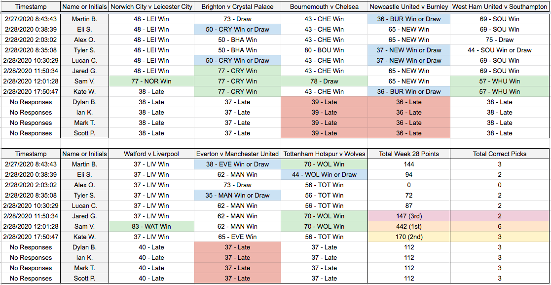 Week 28 Results March 4, 2020 T. Stewart week 28 resultsDownload Share this: Click to share on X (Opens in new window) X Click to share on Facebook (Opens in new window) Facebook Like Loading... Related