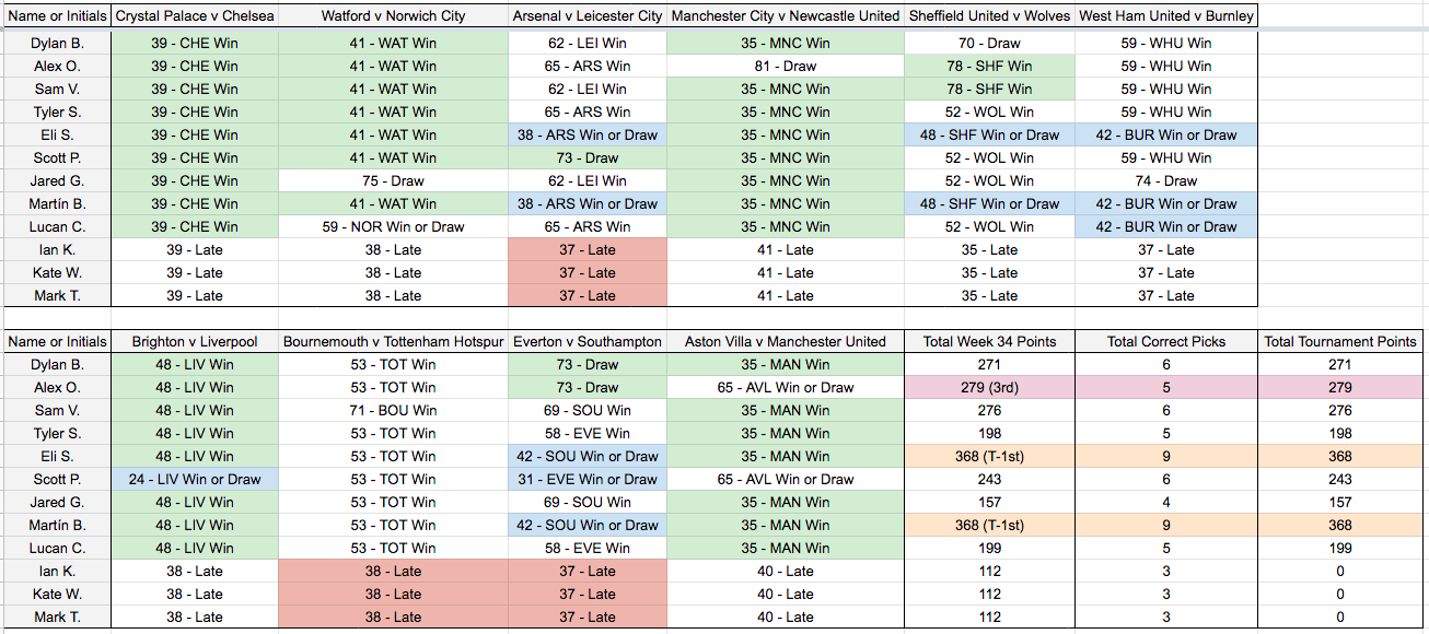 Week 34 Results July 10, 2020 T. Stewart week 34 resultsDownload Share this: Click to share on X (Opens in new window) X Click to share on Facebook (Opens in new window) Facebook Like Loading... Related