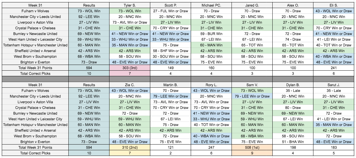 Week 31 Results April 13, 2021 T. Stewart week 31 resultsDownload Share this: Click to share on X (Opens in new window) X Click to share on Facebook (Opens in new window) Facebook Like Loading... Related