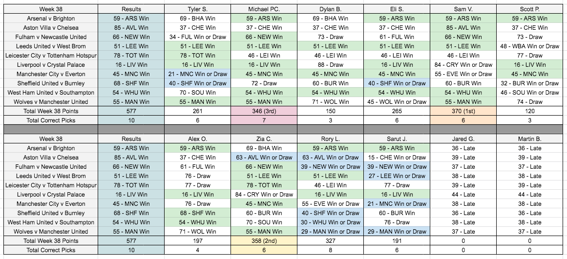 Week 38 Results May 25, 2021 T. Stewart week 38 resultsDownload Share this: Click to share on X (Opens in new window) X Click to share on Facebook (Opens in new window) Facebook Like Loading... Related
