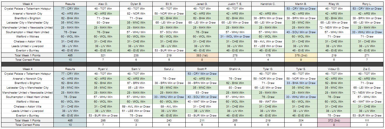Week 4 Results September 14, 2021 T. Stewart week 4 resultsDownload Share this: Click to share on X (Opens in new window) X Click to share on Facebook (Opens in new window) Facebook Like Loading... Related