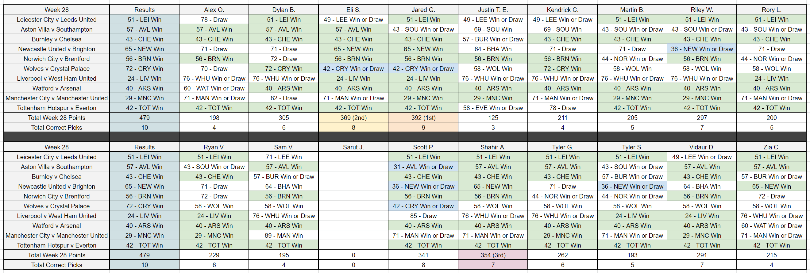 Week 28 Results March 8, 2022 T. Stewart week 28 resultsDownload Share this: Click to share on X (Opens in new window) X Click to share on Facebook (Opens in new window) Facebook Like Loading... Related