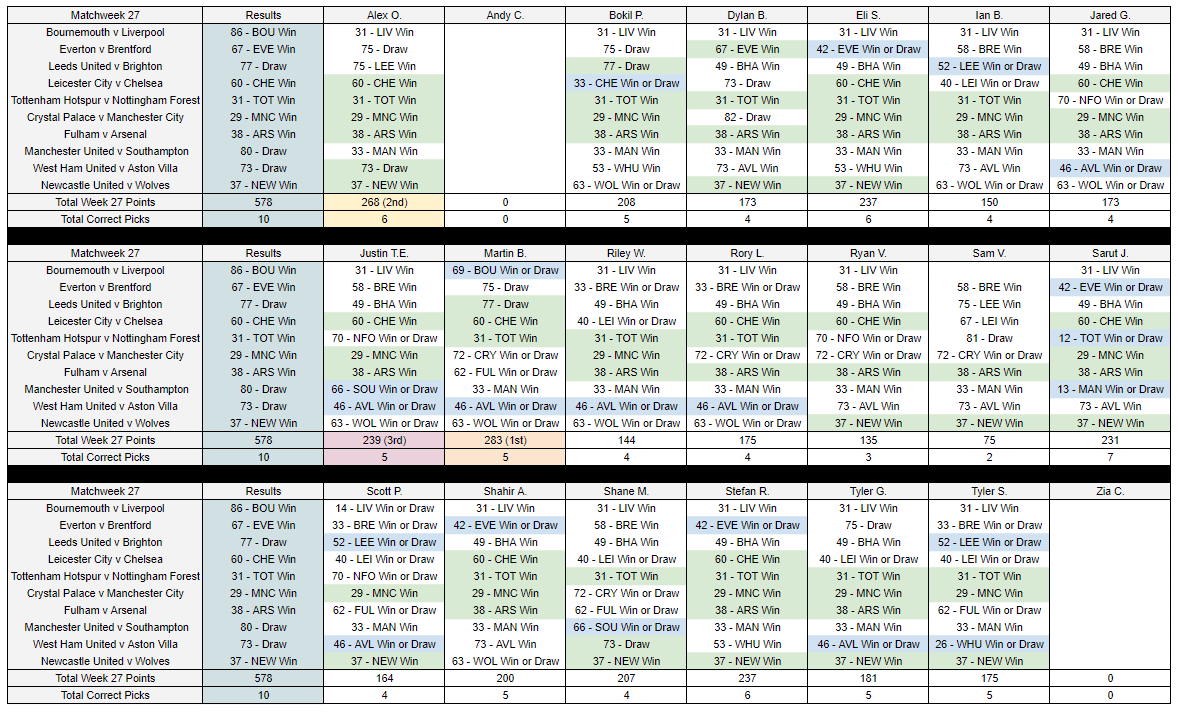 Week 27 Results March 12, 2023 T. Stewart week 27 resultsDownload Share this: Click to share on X (Opens in new window) X Click to share on Facebook (Opens in new window) Facebook Like Loading... Related