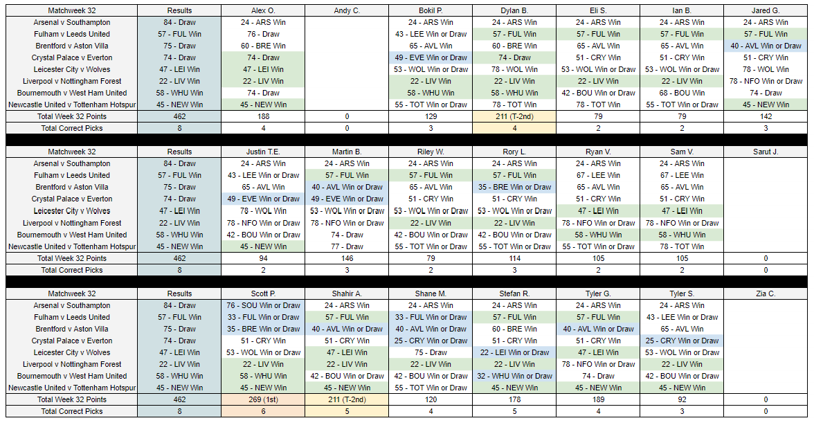 Week 32 Results April 23, 2023April 23, 2023 T. Stewart week 32 resultsDownload Share this: Click to share on X (Opens in new window) X Click to share on Facebook (Opens in new window) Facebook Like Loading... Related