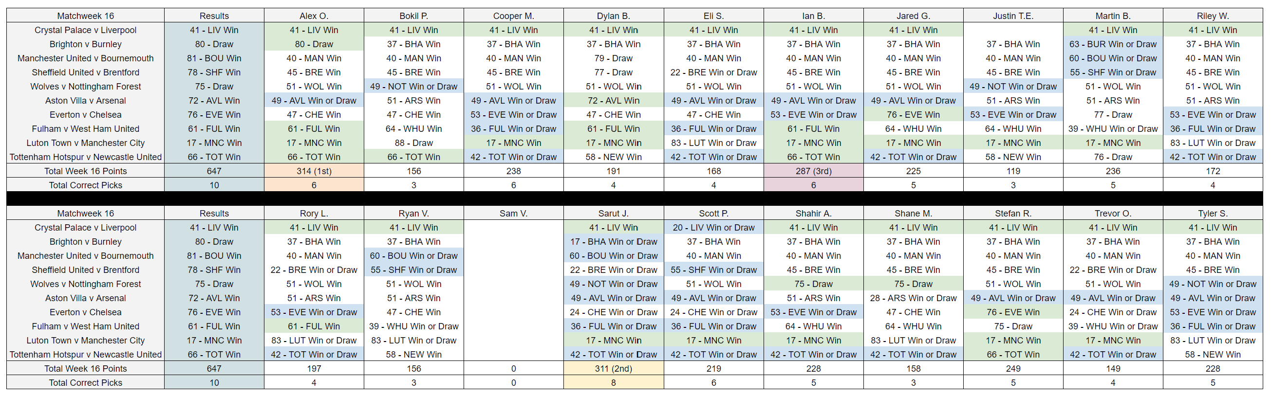 Week 16 Results December 10, 2023December 10, 2023 T. Stewart week 16 resultsDownload Share this: Click to share on X (Opens in new window) X Click to share on Facebook (Opens in new window) Facebook Like Loading... Related