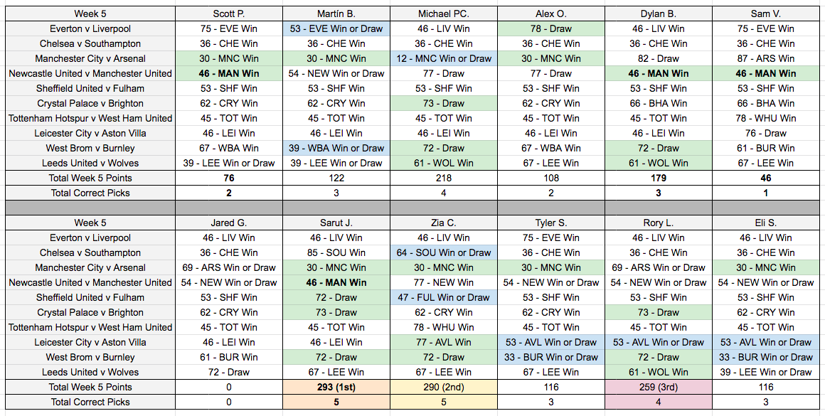 Week 5 Results