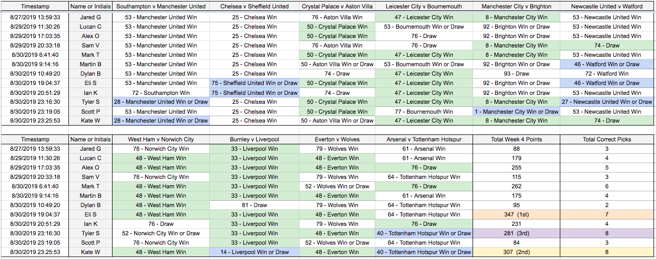 Week 4 Results