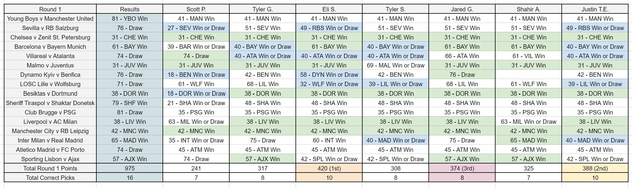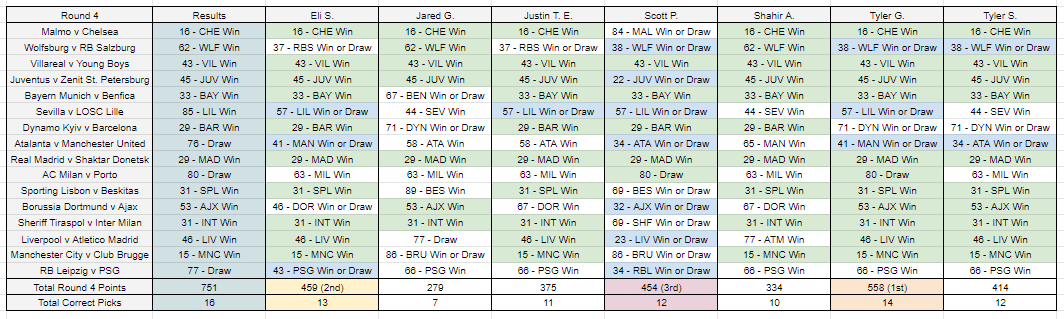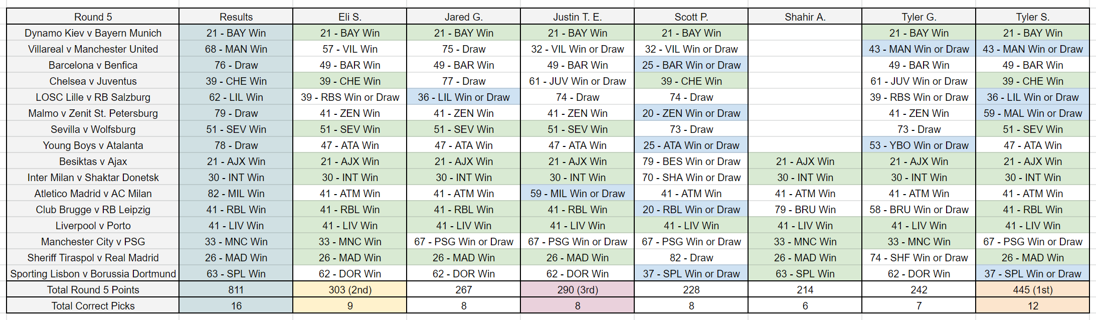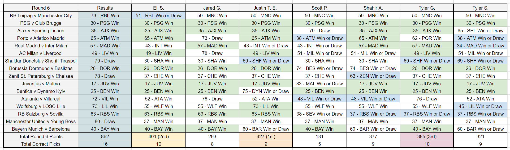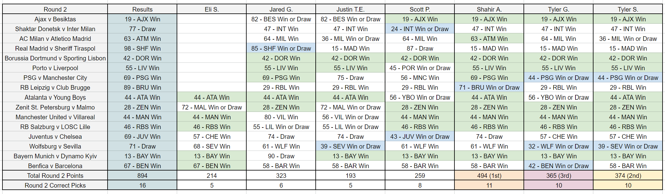 - Zero points are awarded for “Late Picks” for the Champions League Cup!