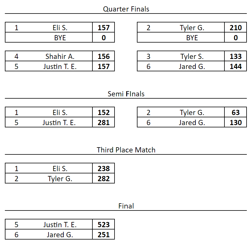 - Third Place Match – April 5, 6, 12 & 13 and May 3 & 4 (12 matches)